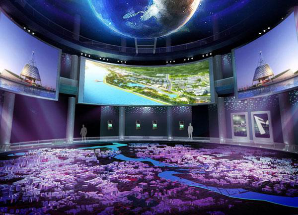 3,智能化:以计算机为中心的数字沙盘,结合音响系统,照明系统,可以精确,宏观,并根据显示需求的不同需求调整显示内容;