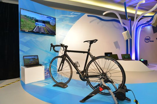 虚拟自行车又称虚拟自行车系统,是基于虚拟漫游技术,采用多通道交互技术,包括传感器技术、 DSP控制技术、多线程无阻塞数据实时通信技术、立体显示多通道交互。虚拟自行车可以实现虚拟场景中人们的漫游,并且可以模拟骑车者认为的任何骑行场景,森林,沙漠,山脉,海边,景点等。除了渲染场景,传感器技术可以让骑行步行者在真实的道路环境中感受骑行效果。斜坡,下坡,颠簸,水,雪,沙等。增强展厅互动体验元素。