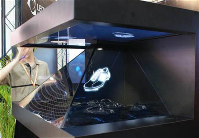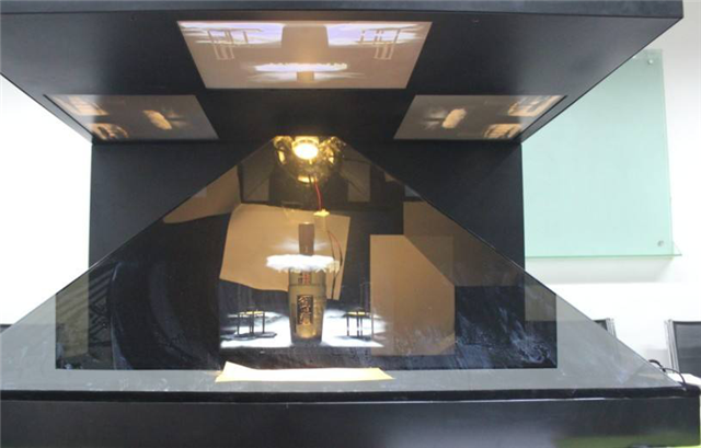 270度幻像成像系统的原理是在机柜的中间悬挂三维图像,从三个侧面可以看到画面,从而产生一种虚幻和真实的视觉效果。通过270度幻像成像展示的产品不仅色彩鲜艳,清晰度高,而且具有空间感和透视感,从而完成了对虚拟图像和实际物体的交互显示。