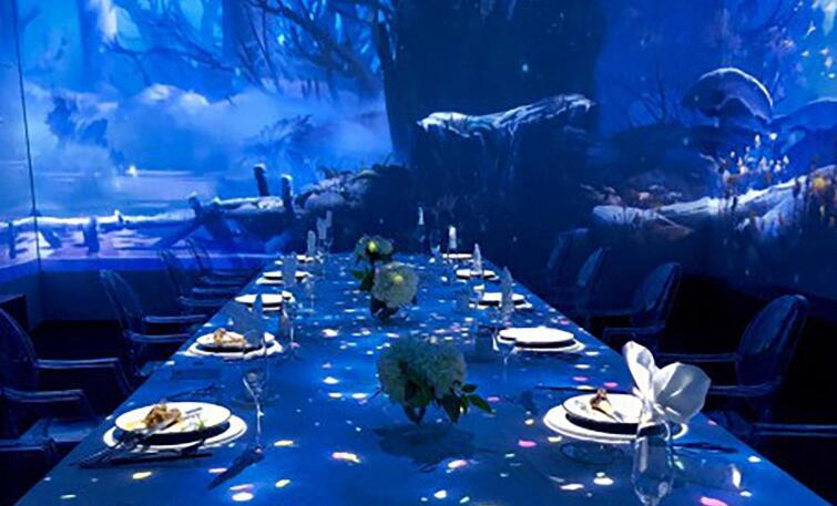 1.沉浸式投影可以创造一个独特的主题餐厅。沉浸式用餐体验可以投射不同风格的图片,创建不同主题的餐厅。