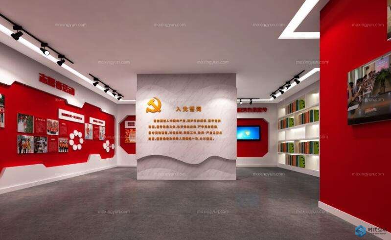 社区党建展厅的设计让与会者认识到这种红色文化艺术的历史时代使用价值,并产生共鸣。时代互动认为,作为传播和弘扬党的精神的重要载体和平台,党建展厅在歌曲和色彩的选择上必须展现“大红”。在展厅设计中必须有突出的亮点,通过建模、照明和其他方式突出关键展示内容,或者通过单独的展示、聚光灯和其他方式突出和强调关键展品和重点展示内容。