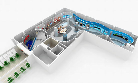 2、将整体视图视为单个布局,整体展厅视图是空间布局设计呈现的窗口,它直接击中人的第一印象。因此,首先我们需要把握它的主题,利用它的独特性,从早期规划中对展厅设计和空间布局进行全面的解读。这一点极其重要。