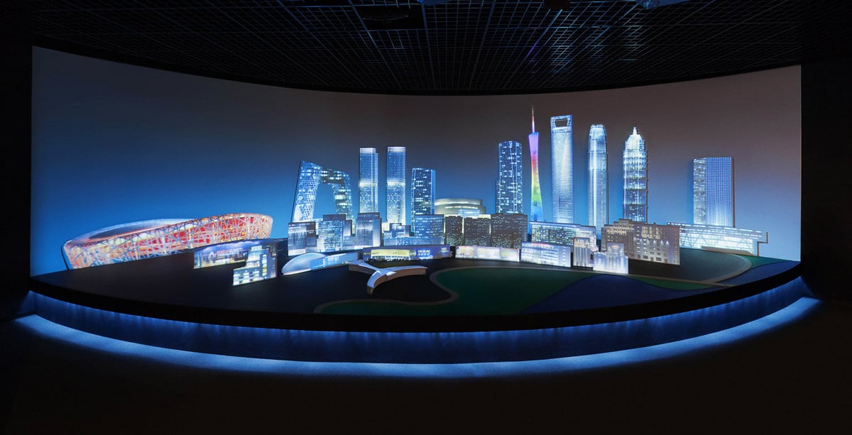 数字沙盘内容展示简单明了,非常规。设计手法既创新了传统,又体现了现代高科技。大模型场景宏大,小模型布局精巧。运用了大量的高科技显示技术,包括声、光、电、互动项目、3D动画、影视等现代视觉效果。展览结合趣味性、互动性和知识性,寓教于乐,实现了与观众的互动革命。数字沙盘配有控制系统,包括整体控制。大厅内的照明、照明、电脑、电视、控制台、空调等强弱电系统按照预先编程好的操作程序自动运行,从通电到断电不需要人工控制。