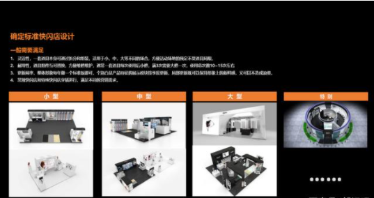 灵活性和耐用性,模块组件可以拆分、组装、替换,快闪店有大中小多种规格,匹配不同面积的场地空间,方便维护修护和运输搭建。