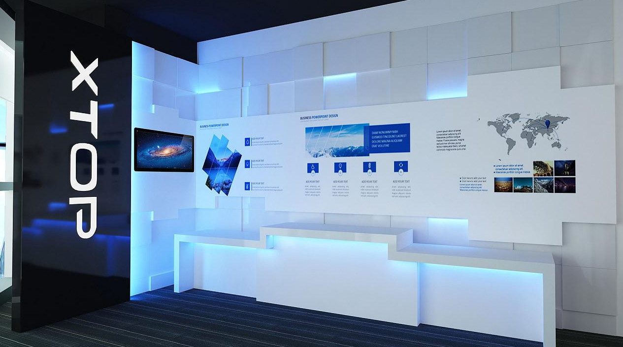 企业展厅的色彩选择要考虑企业文化和企业产品。颜色应该根据展品来选择。只有这样,参观者才能将具有特定颜色的展品联系起来并与之匹配。颜色不要变化太大,要考虑简洁的原则。一般可以采用企业标志的颜色。