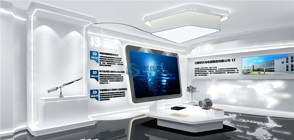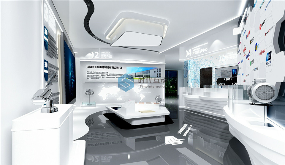 天马电源展厅设计效果图集中展现公司大气恢弘的企业实力,展现公司发展现状和近景远景。电源展厅要体现公司的辉煌发展历程和积淀下来的梦想及文化。企业展厅设计思路主要采用科学的展示设计、大气的展厅氛围、先进的展示设备、新颖的展示形式。以全面工作介绍,展现天马电源的发展成就;以企业文化展现精神内涵。