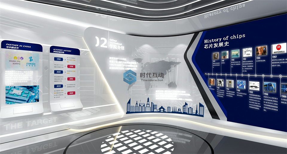 芯片微电子学院展厅设计是企业文化精神的传播,是企业品牌形象的宣传,企业展厅是企业发展远景的展望。芯片学院展厅由学院简介、学院发展、研发团队、芯片领域、芯片发展、合作伙伴、未来发展七大块内容组成。
