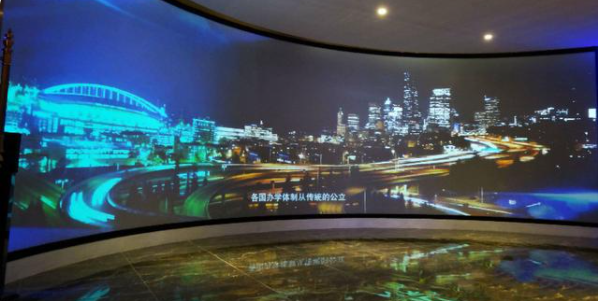 一般指弧度小于180度的阴影屏,通常采用边缘融合大屏幕或多通道无缝投影显示系统,是由多个投影系统组成的大屏幕显示系统。具有视野开阔、清晰度高、更具冲击力和沉浸感的视觉效果。弧形电影院面积可大可小,主要根据展厅实际情况量身定制。它不仅可以作为观影空间,还可以作为新闻发布会等媒体平台,功能多样。