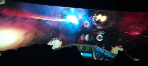 环幕的投影屏弧度为360度,全封闭无缝拼接。一般我们会在圆形空间的中央设置一个圆形的看台,让游客可以从任何角度欣赏圆形的银幕电影,有一种代入感,仿佛人都在电影的场景中。环幕的沉浸感是否强,取决于数字电影的创意以及镜头移动产生的代入感和立体感。它通常适用于显示具有宏场景和多场景的内容。